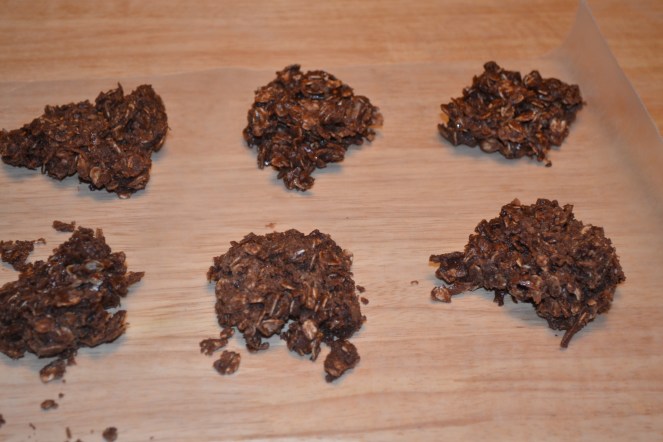 I then added the dry ingredients to the milk mixture and stirred til well mixed. The dough looked and smelled lovely! I proceeded to drop my dough on my waxed paper and before I got 6 cookies down…