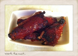 I bailed 30 minutes early and I have to tell you, this is an AMAZING recipe… I am wishing I had done more than 4 ribs. Seriously. AMAZING.